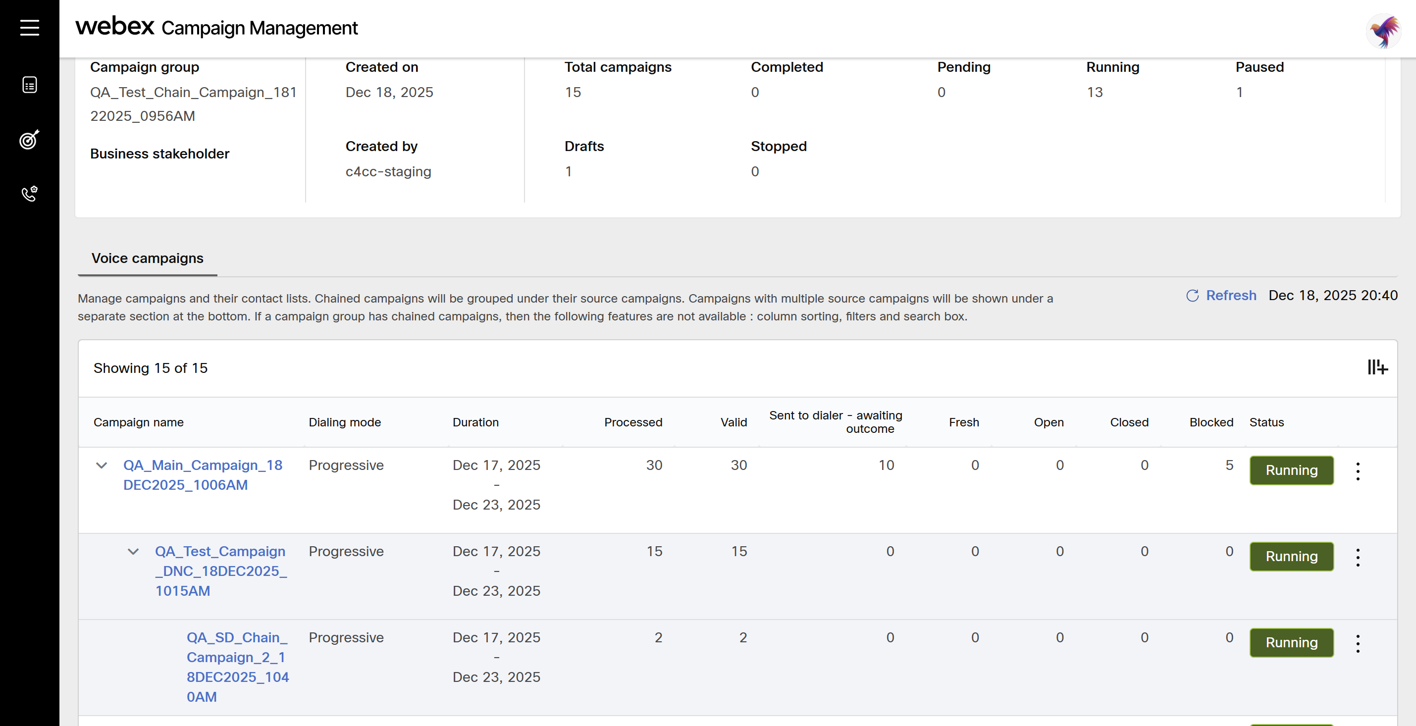 Campaign Chaining refers to the process of transferring a subset of contacts from one campaign (the source) to another campaign (the target or chained campaign) based on the specified chaining criteria which are typically wrap-up codes or telephony outcomes.