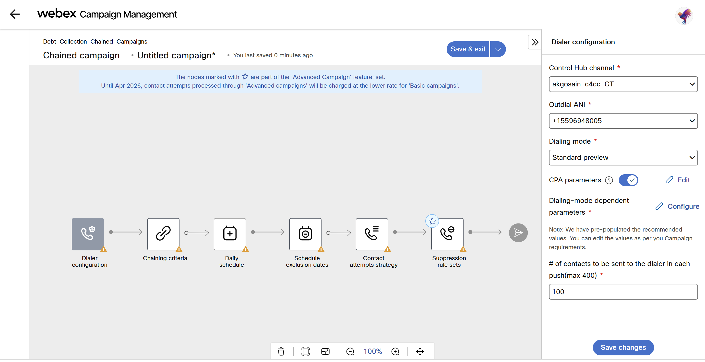 - Configure Dialer configuration node and click Save changes.