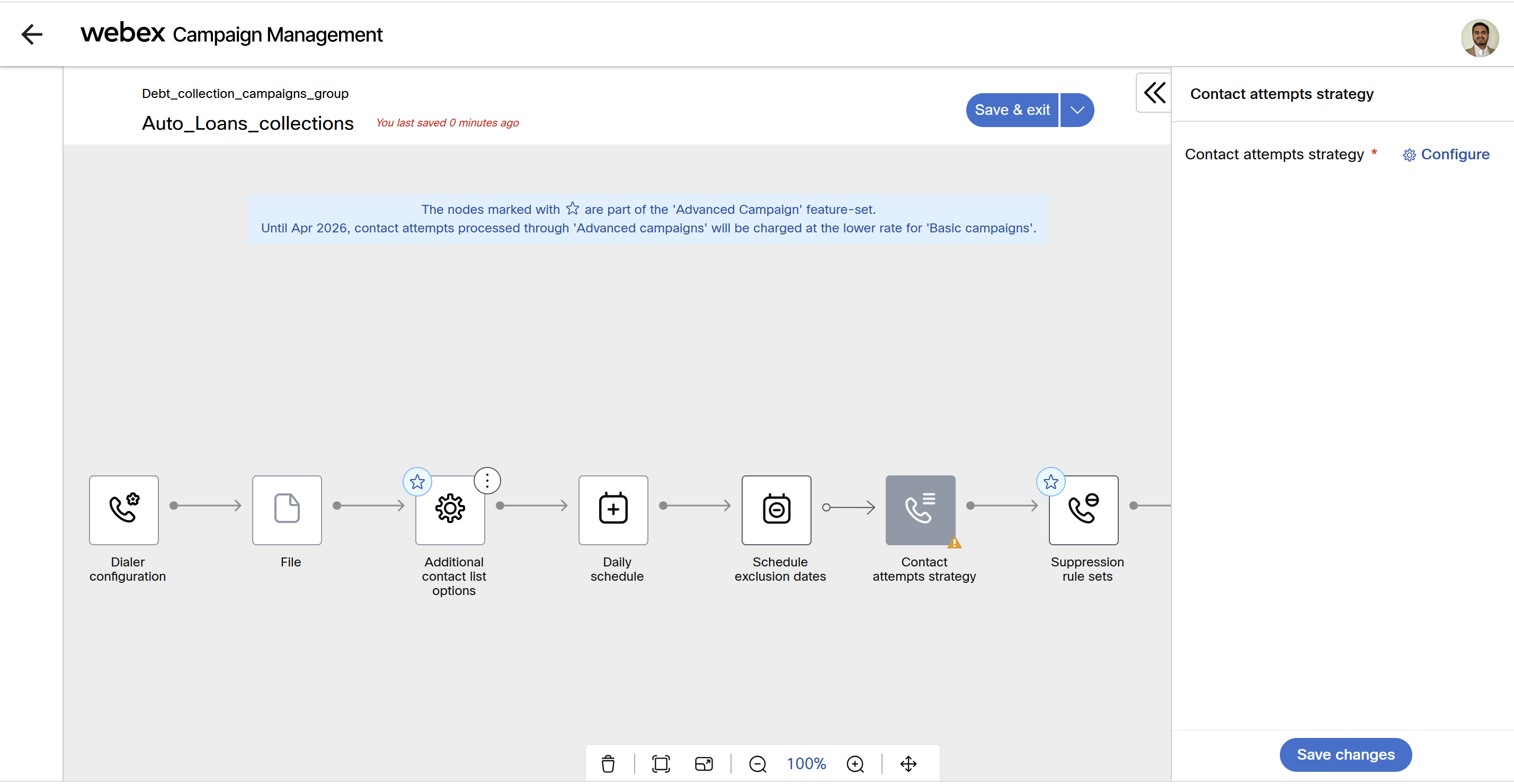 - Select the Contact attempt strategy node, the right pane will display the option to configure.