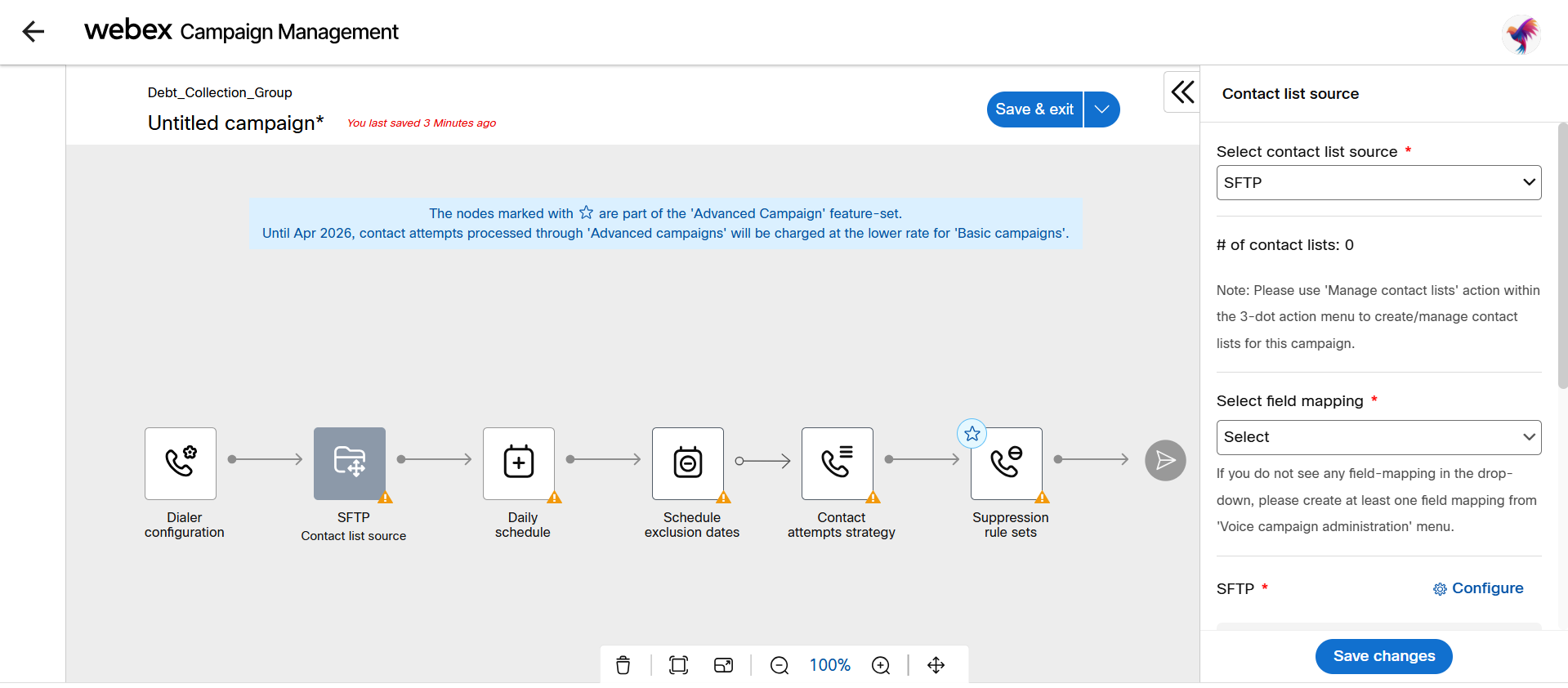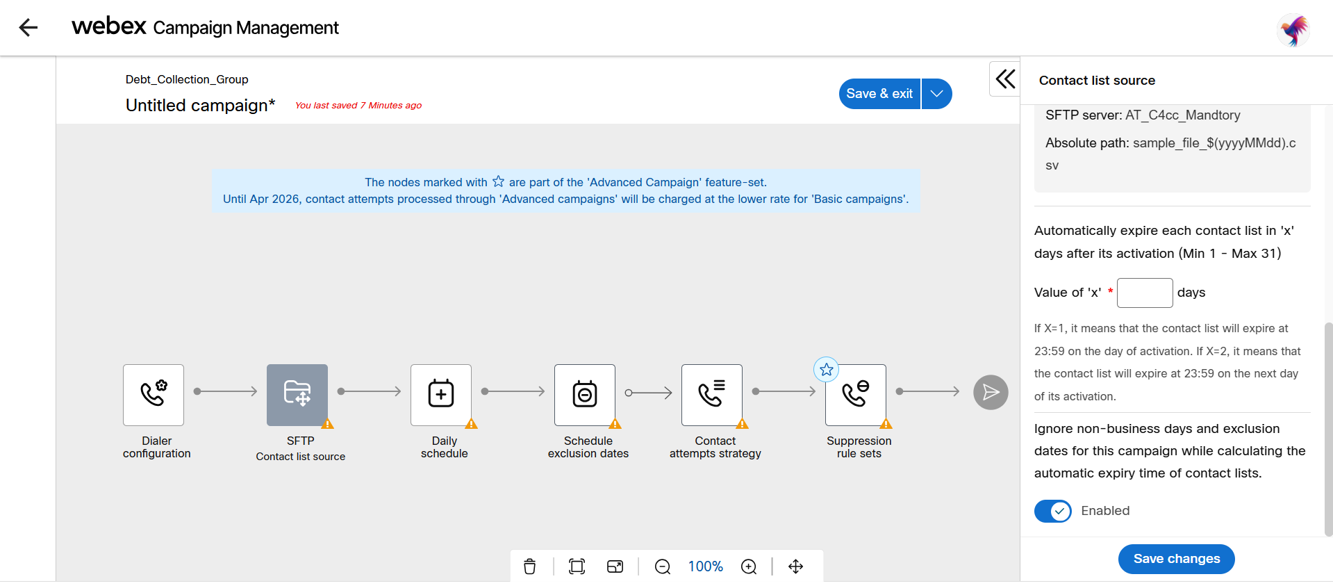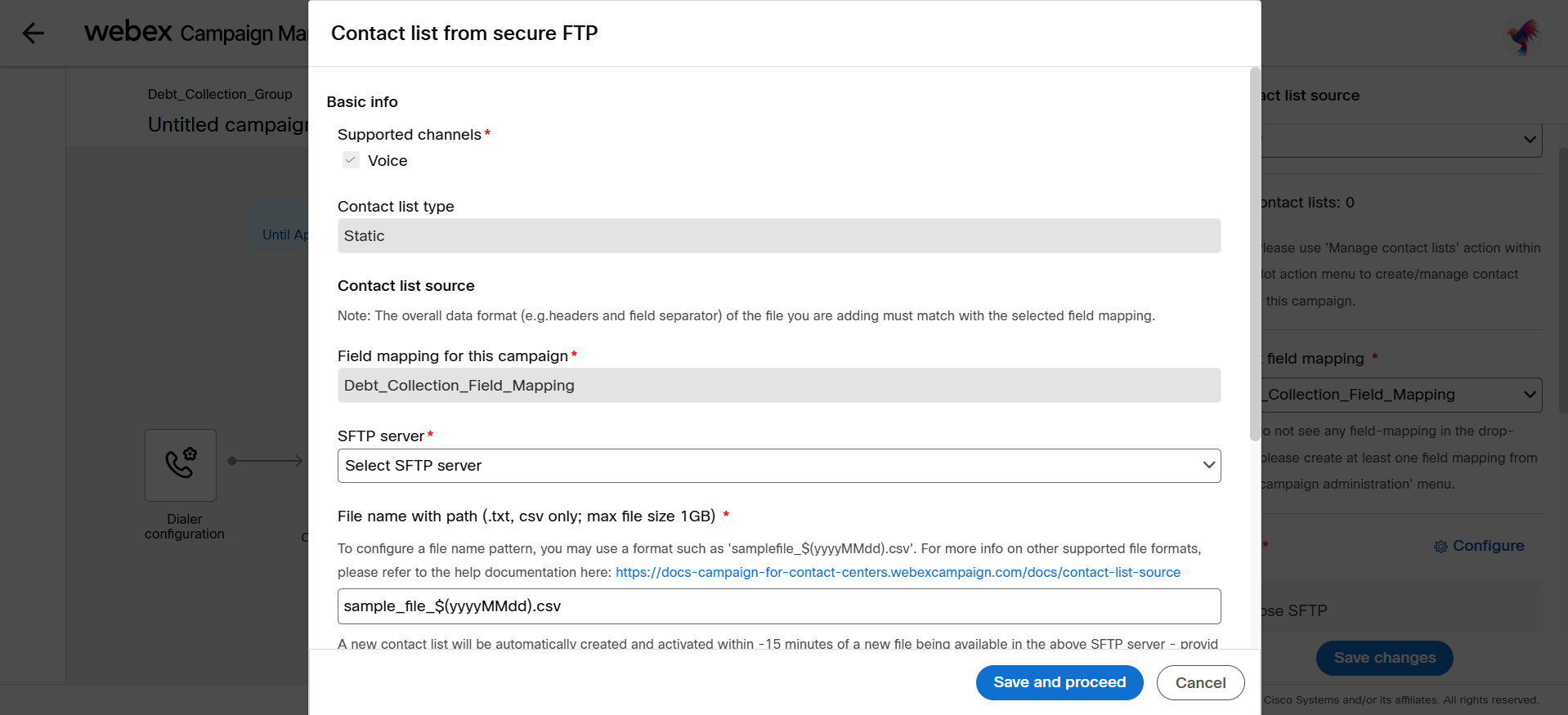 If you want to configure the contact list source as SFTP, configure the below configuration: