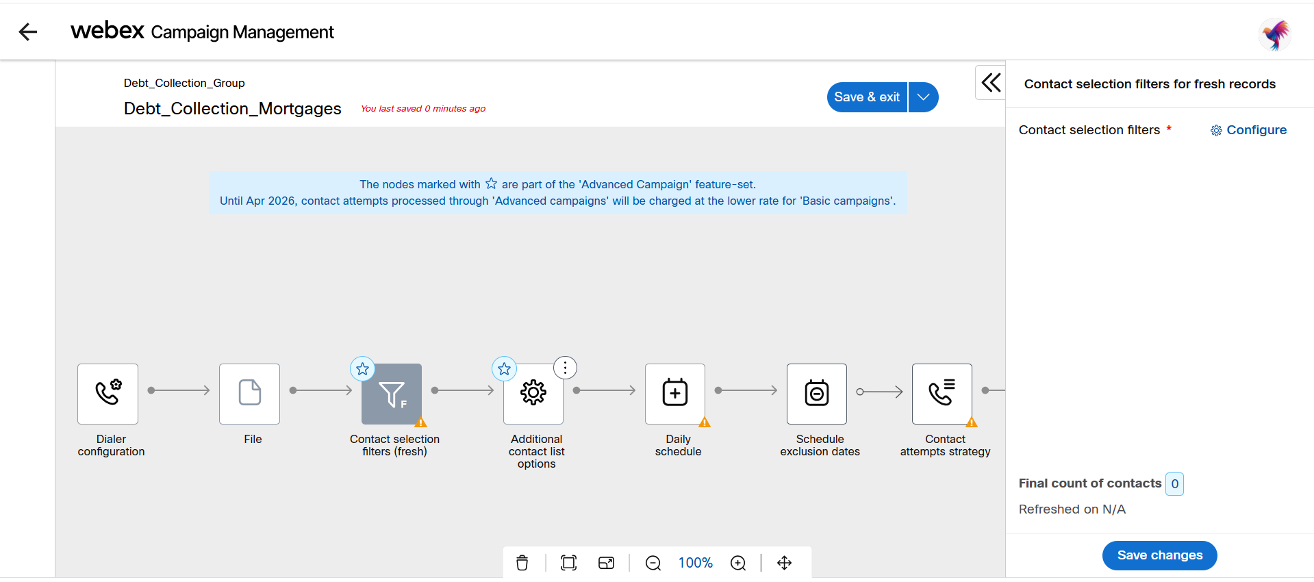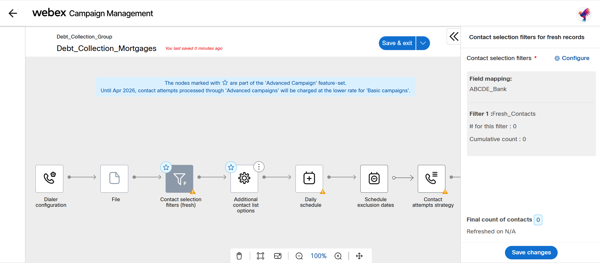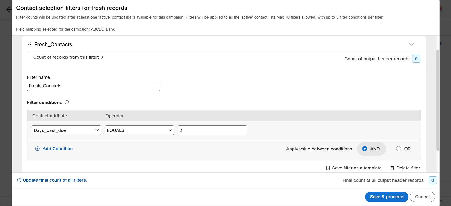 Click Save & proceed. The right pane will display the filter details. The count will be updated once the contact list is configured.