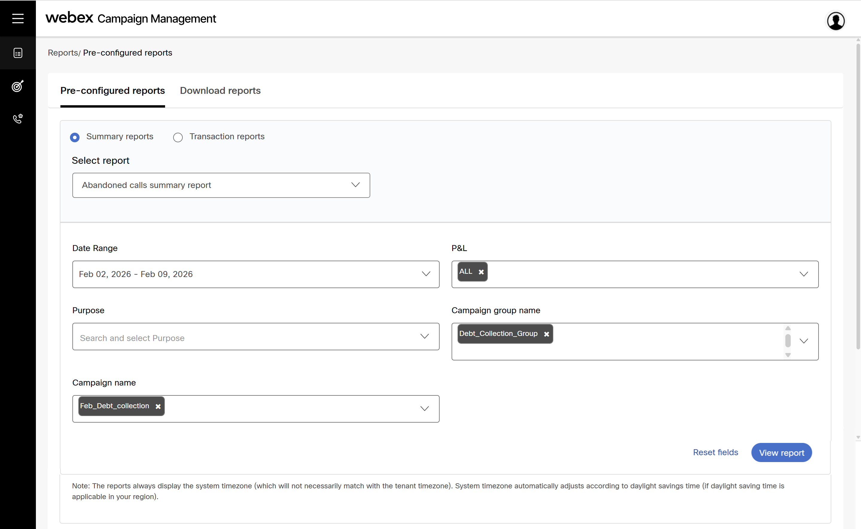 You can use filters like Date Range, P&L, Purpose, Campaign group name, and Campaign name to generate the report. The available filters may vary depending on the selected report. The generated reports will be available here for 90 days.