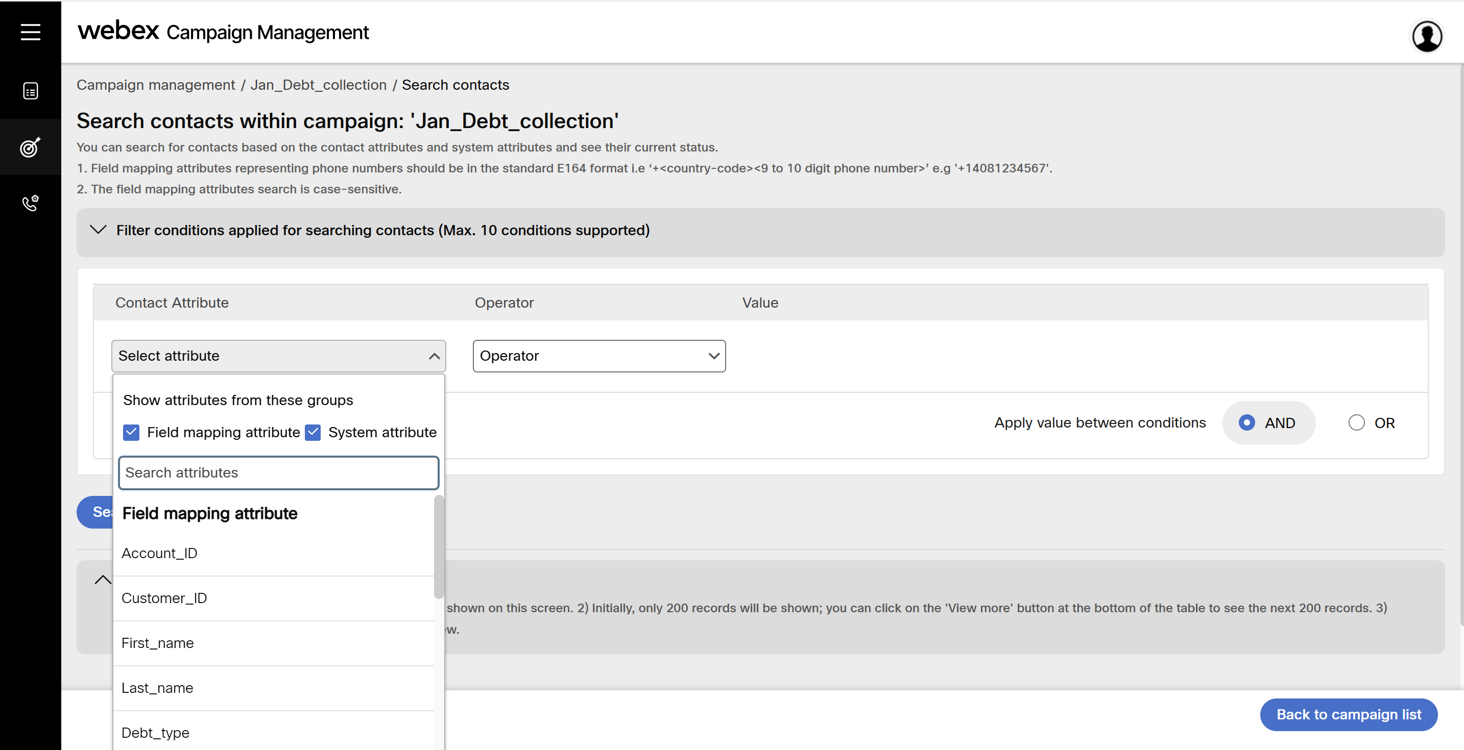 Search contacts within a campaign
