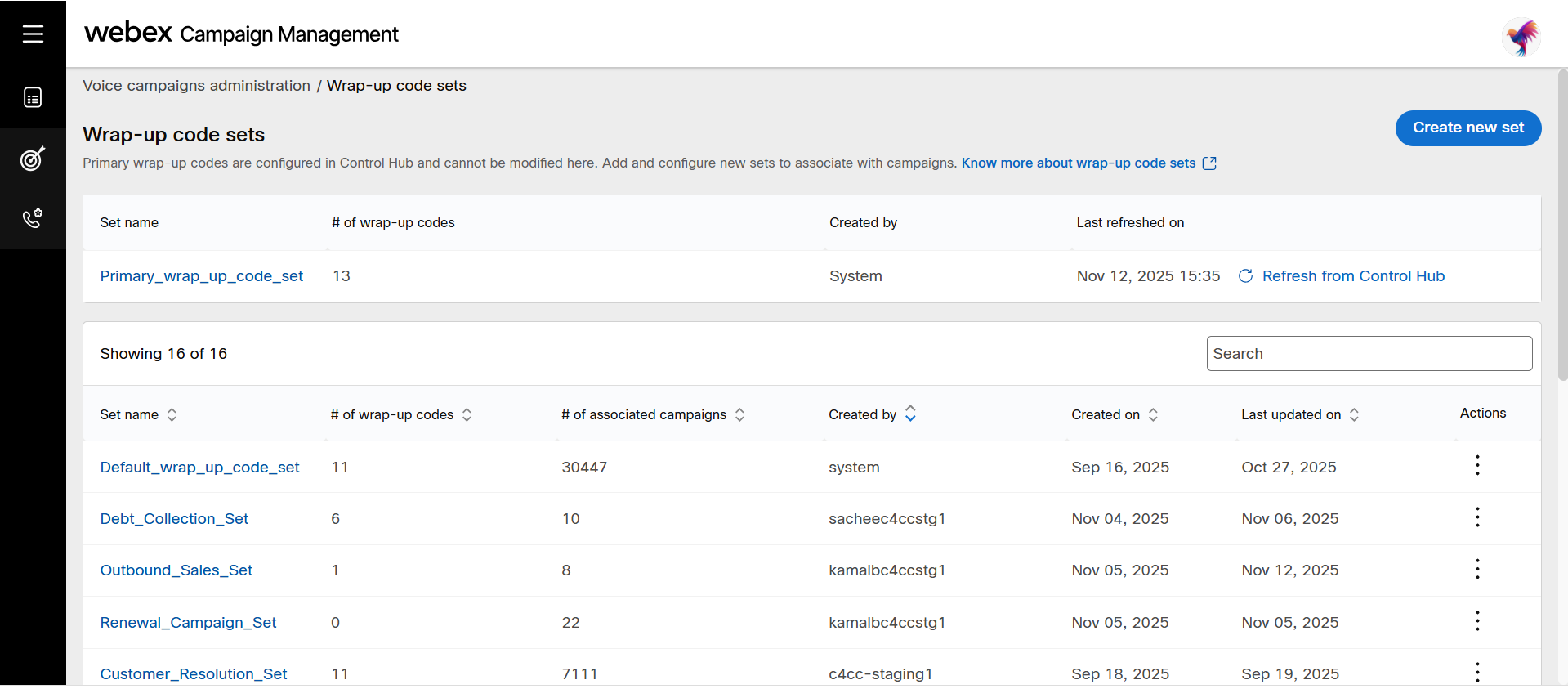 - (Optional) Click the newly created set and edit required wrap-up code setting as needed.