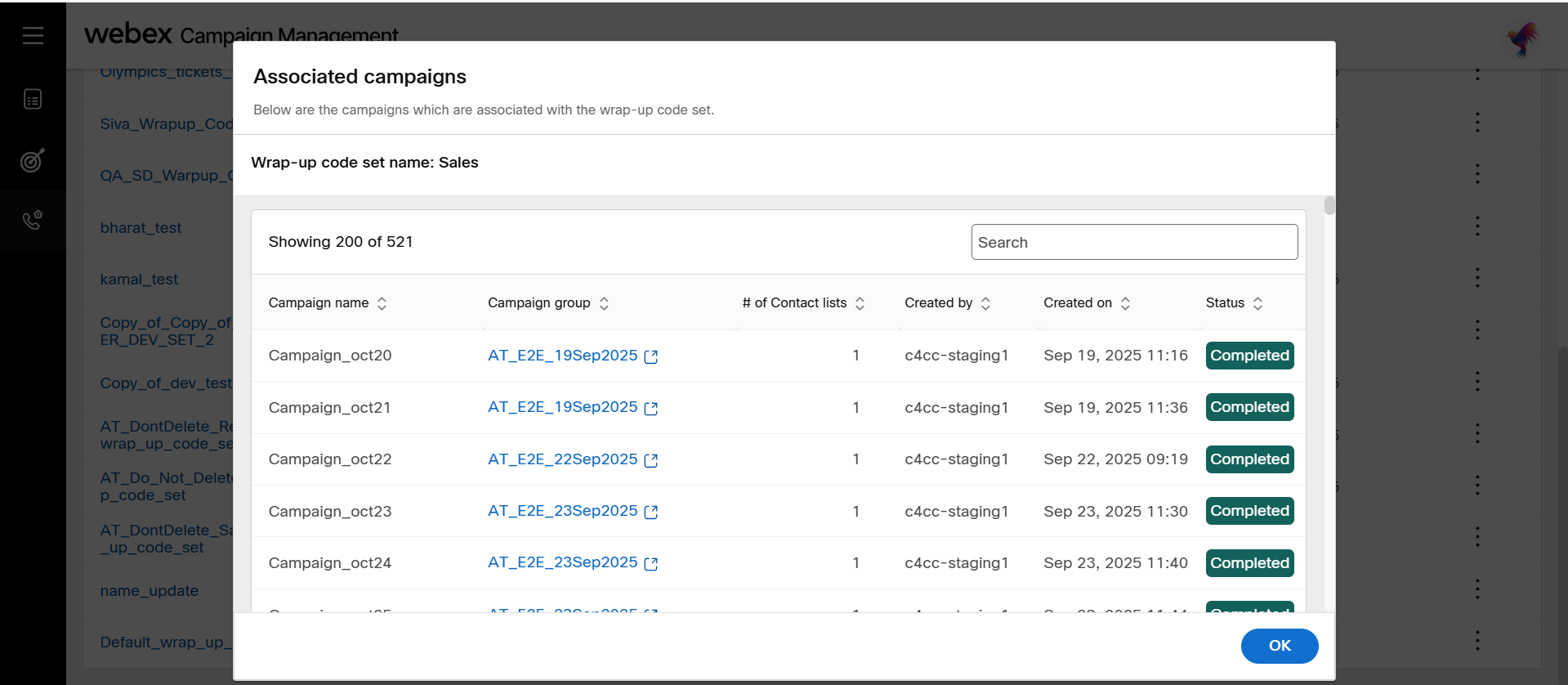 A wrap-up code set cannot be deleted if it is associated with campaigns whose status is running or paused state.