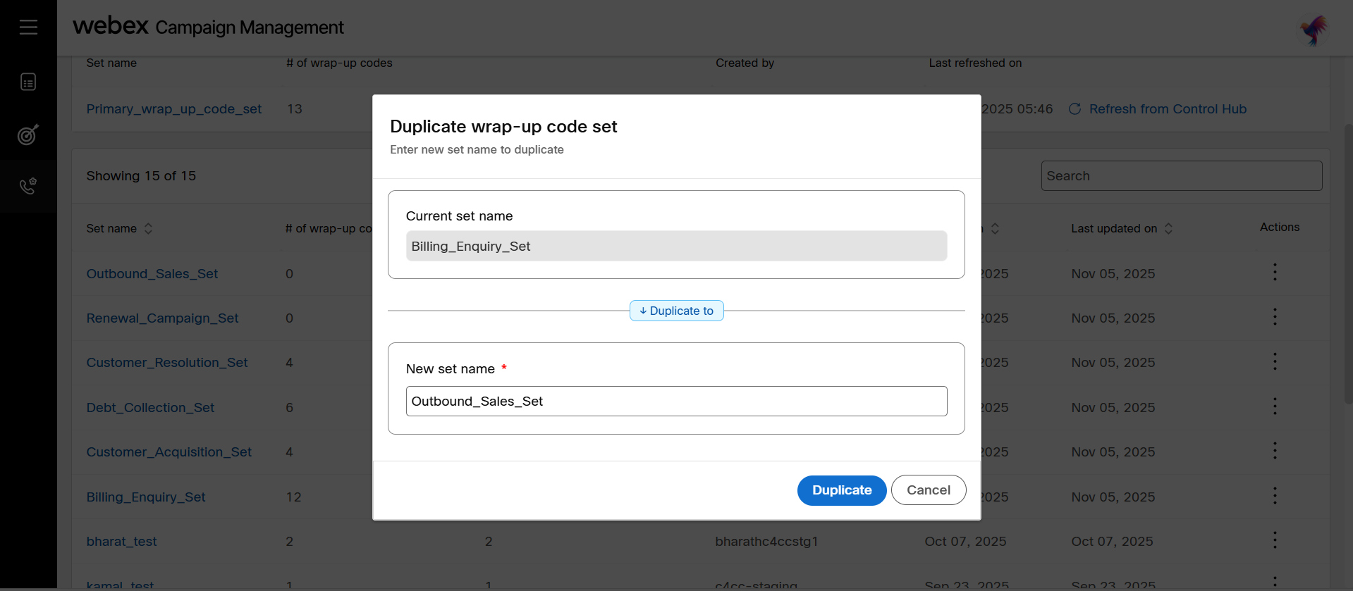 - Enter a name for the set and click Duplicate.