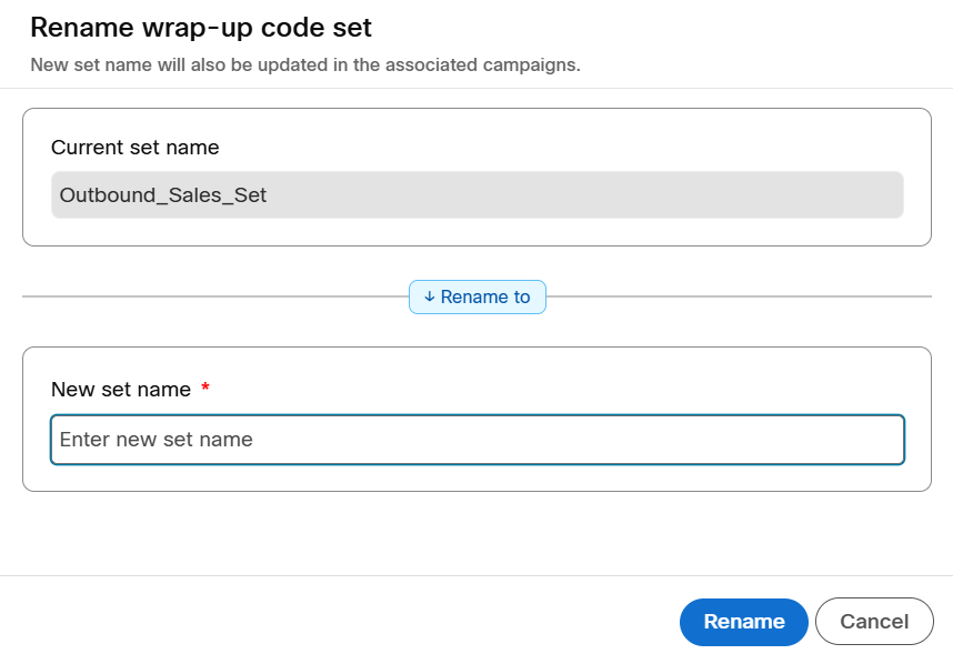 If you choose to reconfigure the wrap-up codes synced from Control Hub, you can do so. Any changes made to the wrap-up code within Webex Campaign will not be overwritten during subsequent synchronizations with Control Hub.